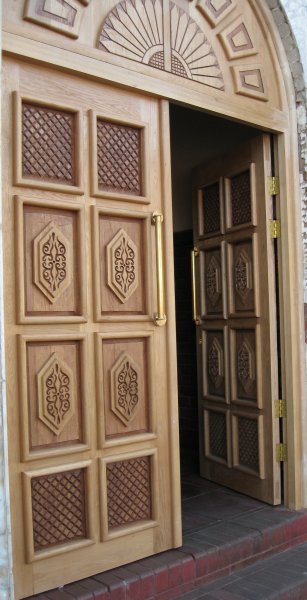 / Carved Mosque Double Doors in Oak with Arched Top Panel 2